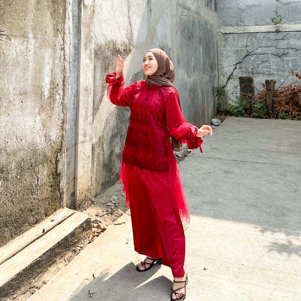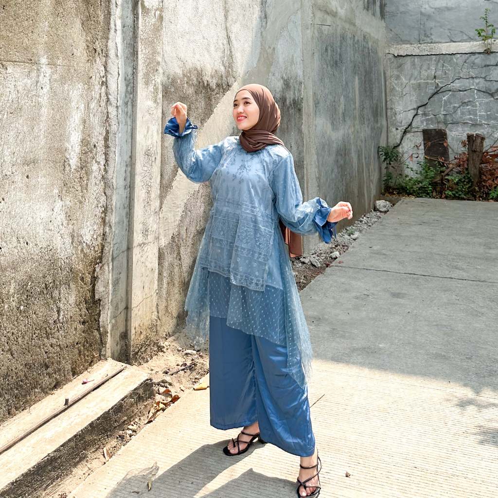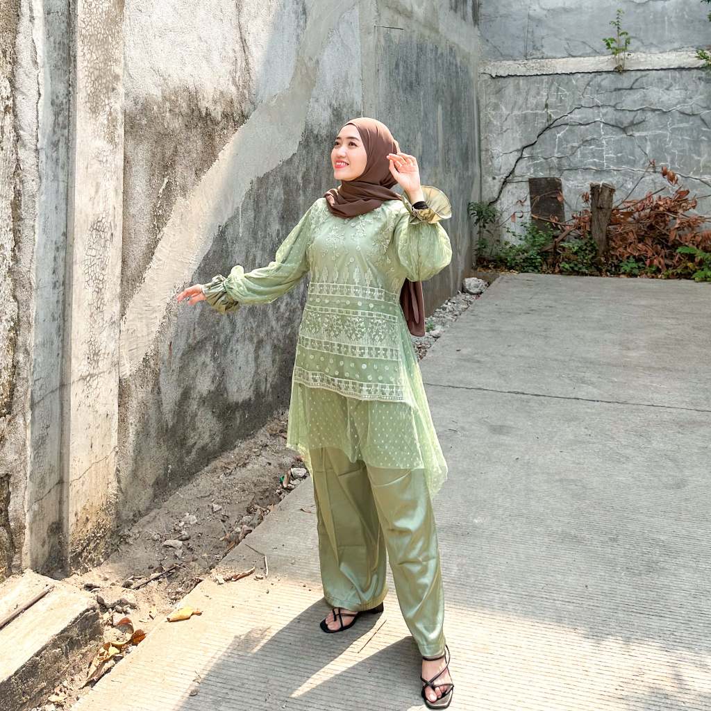 DP 0 Brucat One Set Baju Dan Celana Pesta Kondangan Terbaru Wanita Setelan Lembut Wudhu Bridesmaid Seragam