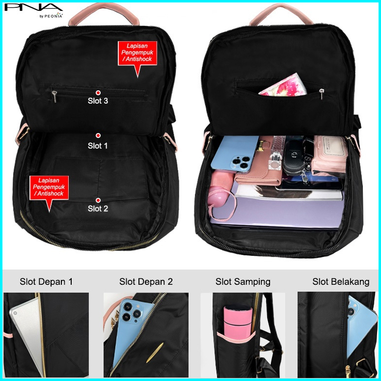 Peonia Pna Erika Water Resistant Tas Ransel Wanita Import Korea Style Laptop Punggung Kantor Kerja Sekolah Kuliah