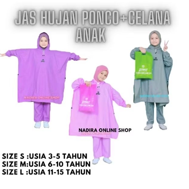 Jas Hujan Anak Usia 3 Tahun-15 Tahun Jas Hujan Anak Ponco+Celana Jas Hujan Ponco Anak Bahan Pvc Kuat Tebal Elastis Kekin