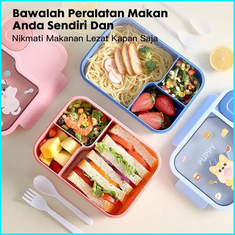 Eatkit Paket Tempat Makan Anak 1450ml Lunch Box Set 3 Sekat Bpa Free Kotak Bekal Karakter Tas Bekal