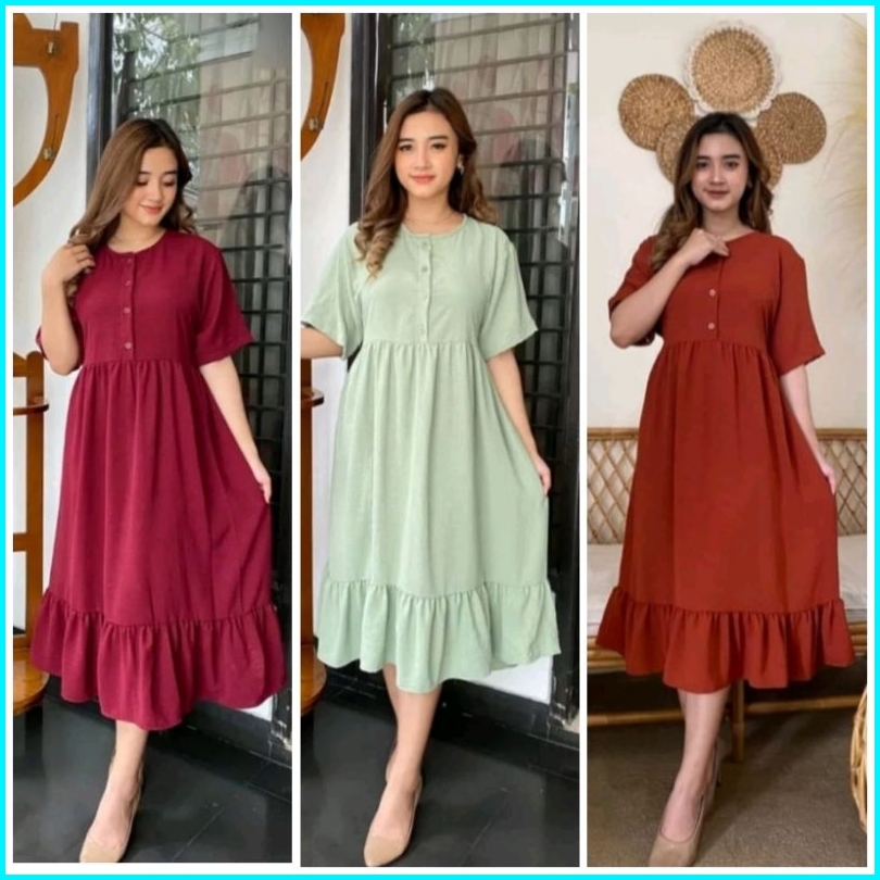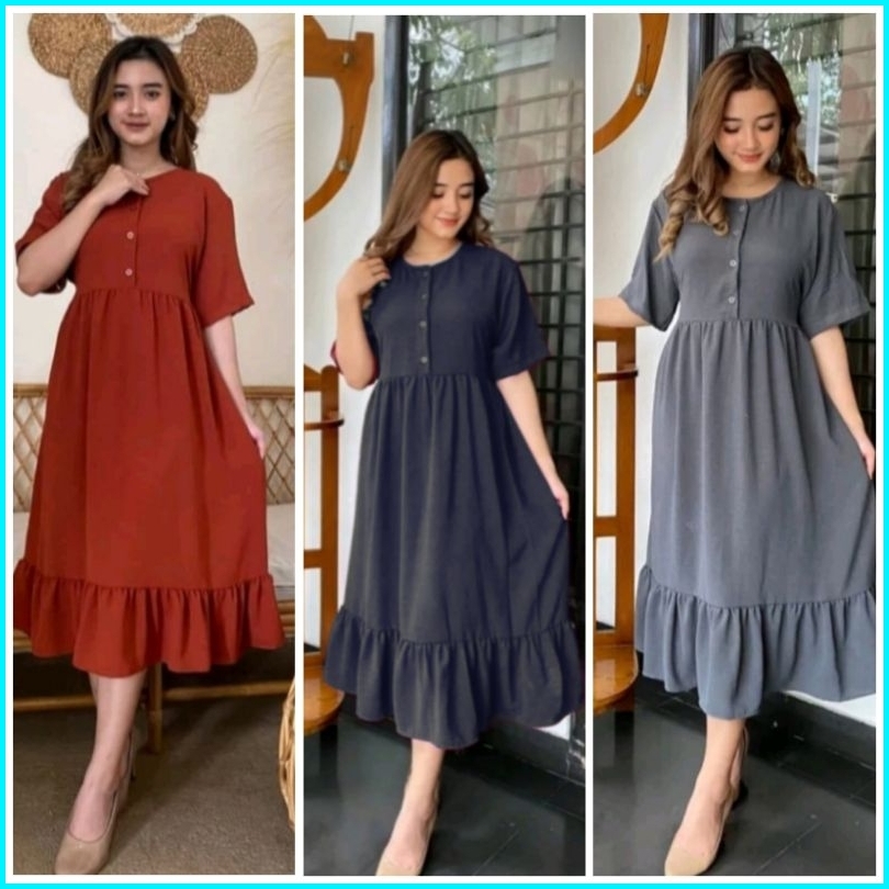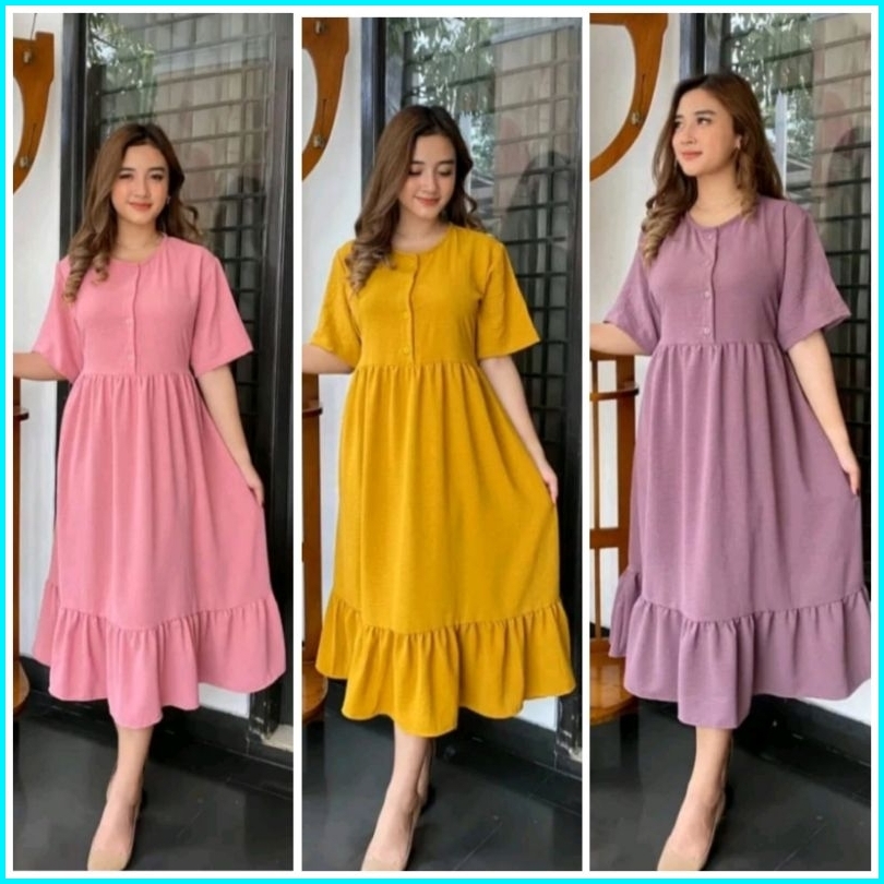 Daster Viral Paket 3 Pic Dress Wanita Bumil Busui Bahan Crinkle Airflow Ld 120 Nadira Dress Crinkle
