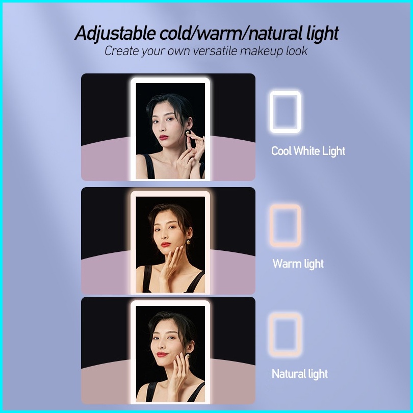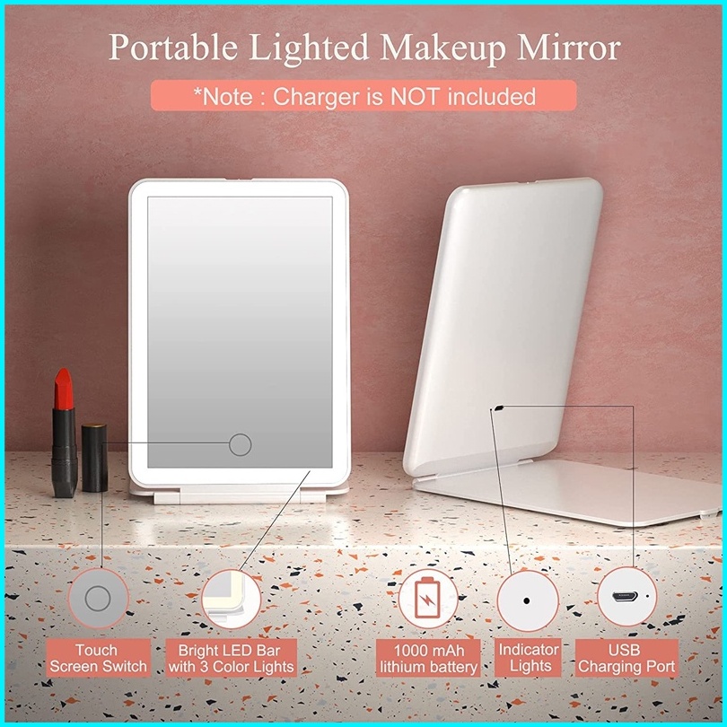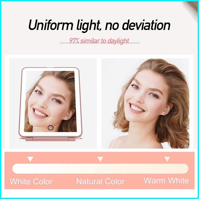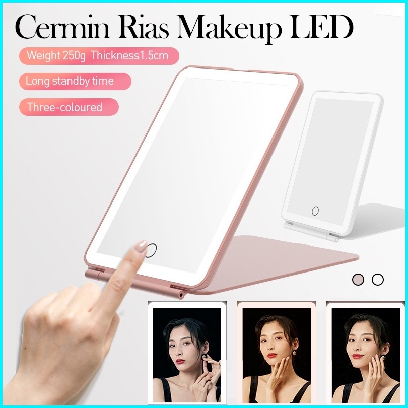 Cermin Rias Makeup Led Foldable Vanity Mirror Cermin Meja Pencahayaan Tiga Nada Mirror Led Charge Usb