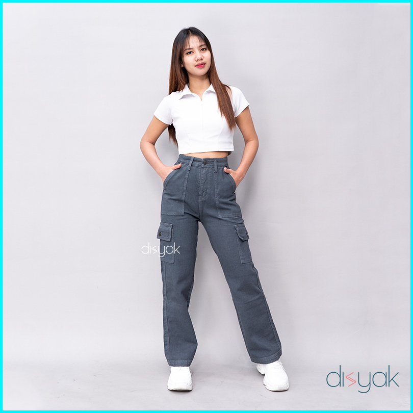 Disyak - Boyfriend Cargo Pants Jeans Non-stretch Grey 713-813