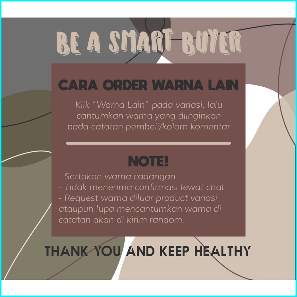 HITAM, PUTIH, MOCCA, ABU MUDA, ABU TUA, LILAC, SAGE GREEN, BEIGE, OLIVE, STEEL BLUE, LATTE, PEACH, GREEN LIME, MINT, DUSTY PINK, BABY PINK, BURGUNDY, MAROON, NAVY, KUNING, SALMON, HIJAU BOTOL, ARMY