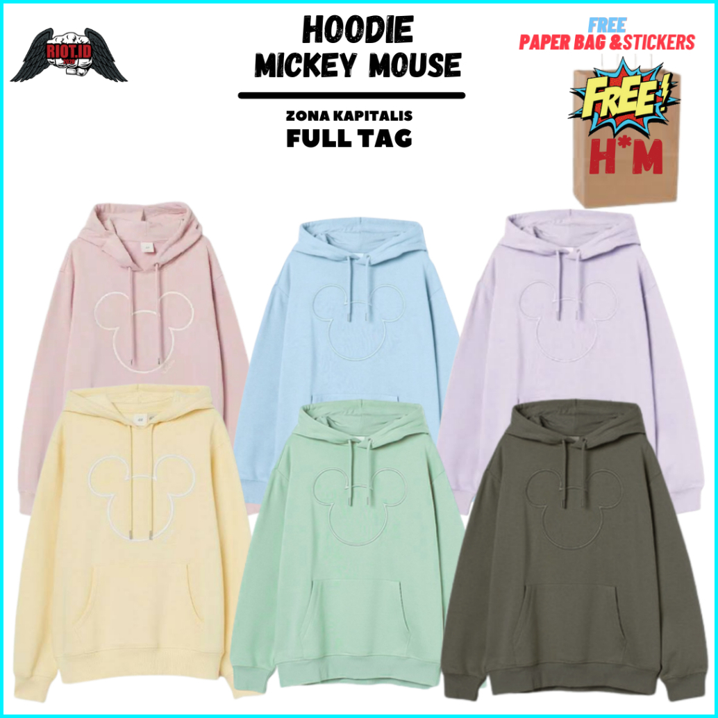 3.3 Hoodie Hm Mickey Mouse Bordir Army Pink Lilac Kuning Mint Biru Full Tag Jacket Sweater