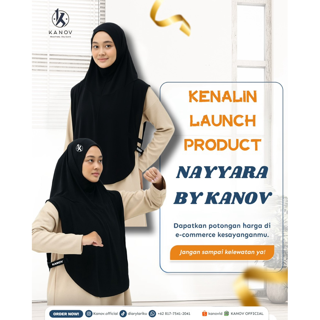 Kanov Nayyara Black - Kerudung Hijab Sporty Olahraga Syarie