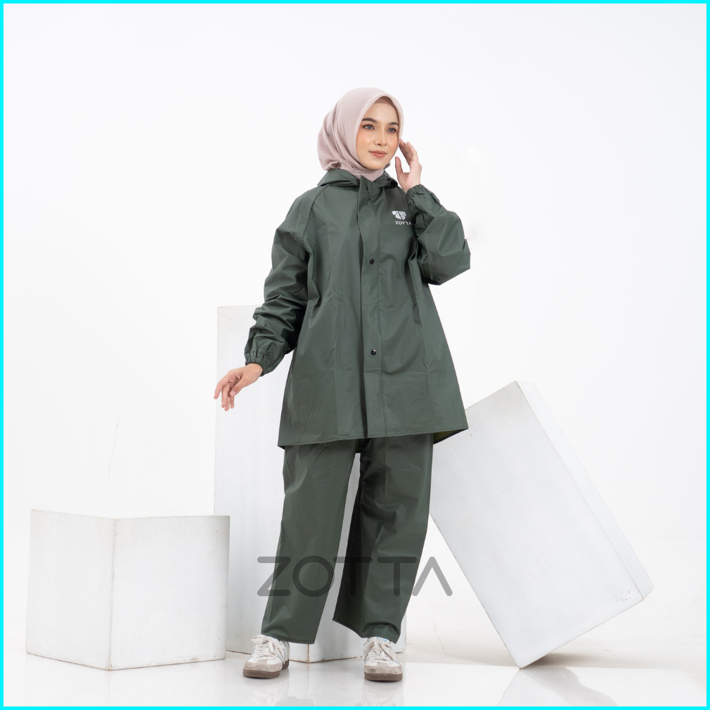 Zotta Jas Hujan Wanita Dewasa Stelan Atasan Celana Raincoat Bahan Pvc