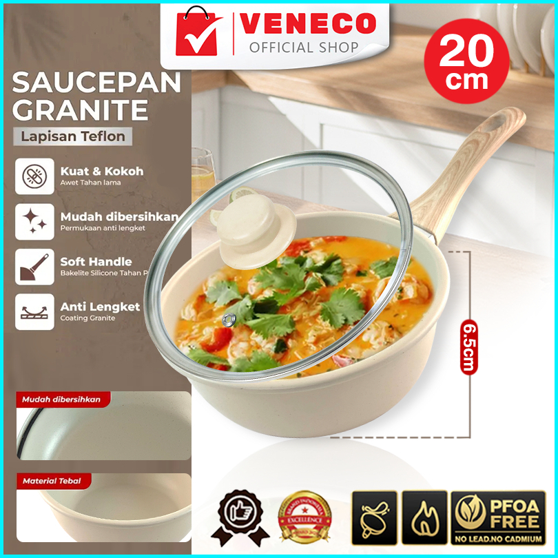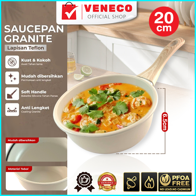 Veneco Deep Sauce Pan 20cm Granite Coating Anti Lengket