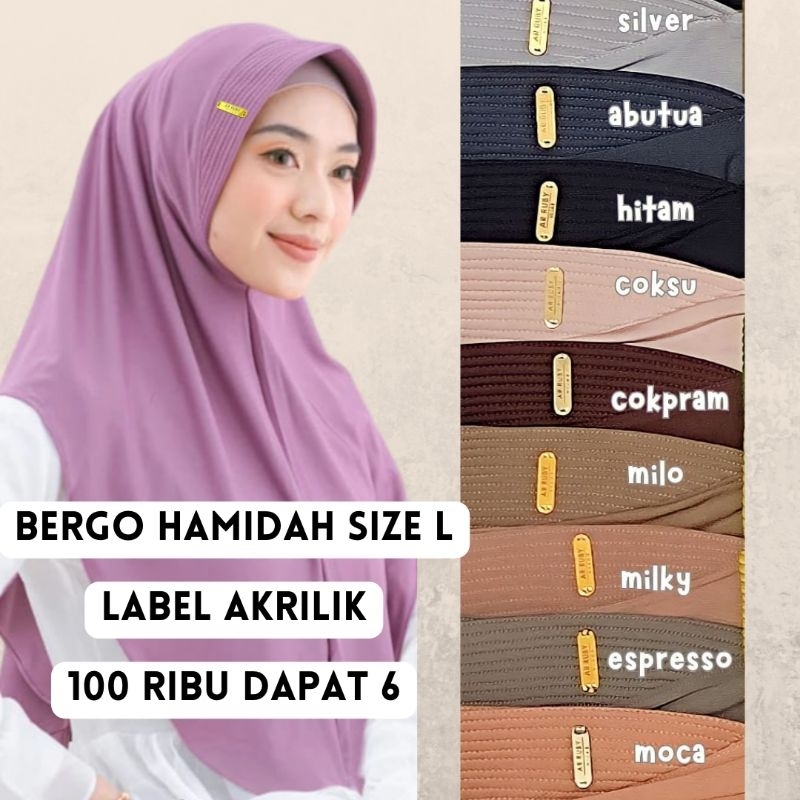 Hijab Bergo Hamidah Size L Label Akrilik Gold Nutup Dada Jersey Premium