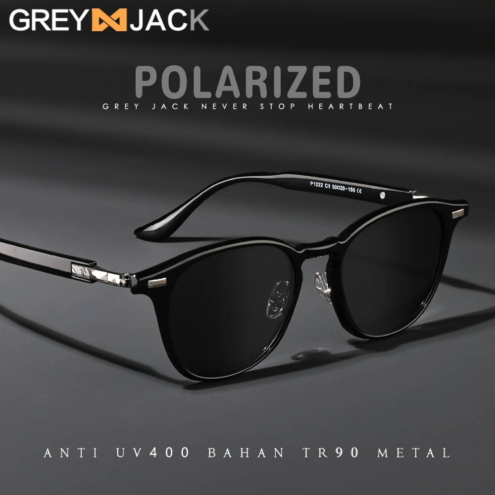 Grey Jack Kacamata Hitam Sunglasses Polarized Kotak TR+Metal Anti UV400 / Anti Silau Fashion Pria dan Wanita P 1232