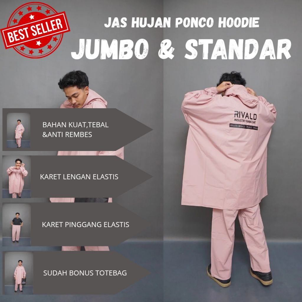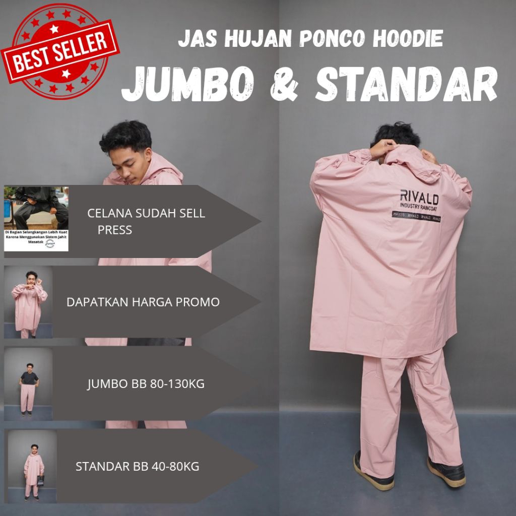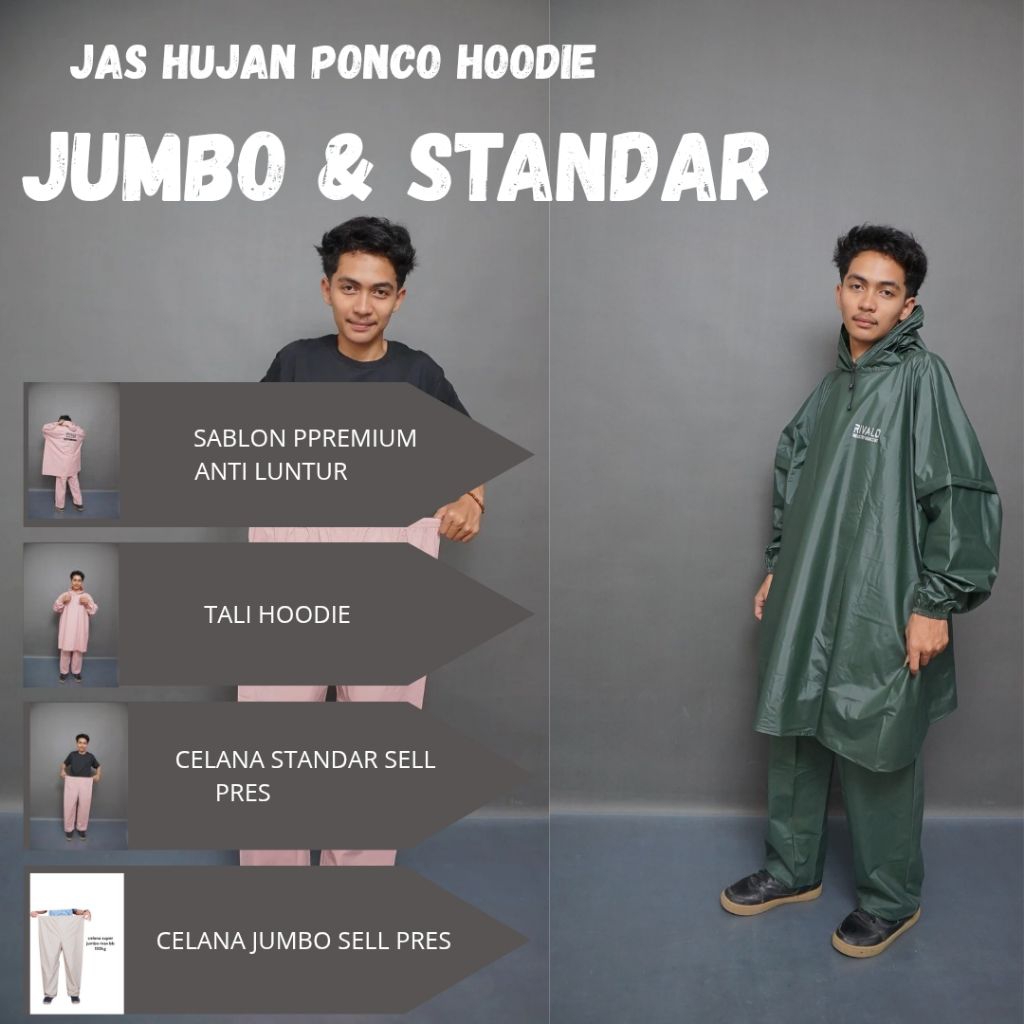 Jas Hujan Setelan Ponco Jumbo Pria Wanita Bahan Pvc Premium Original By Rivald