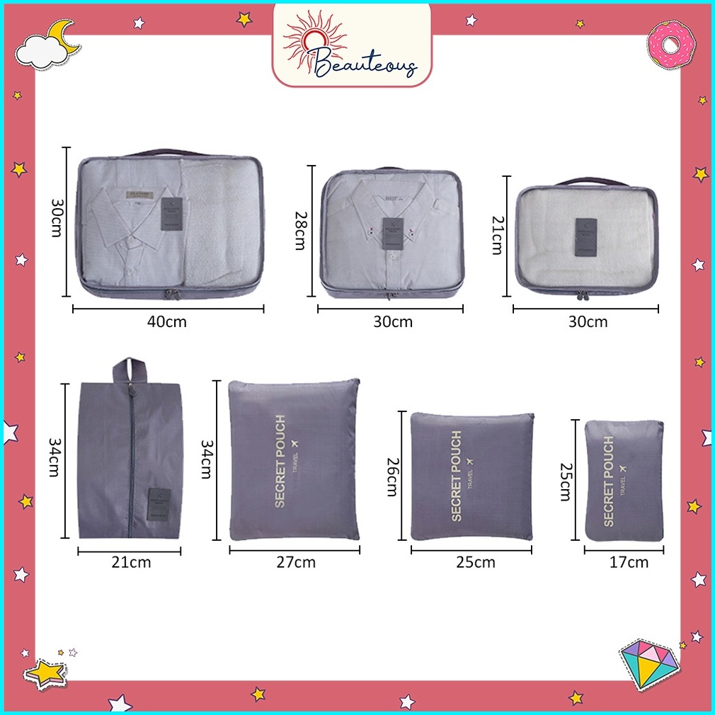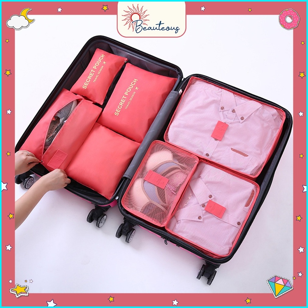 Travel Bag Pouch 7 In 1 Tas Travel Koper Organizer Storage Penyimpanan Baju Sepatu Make Up
