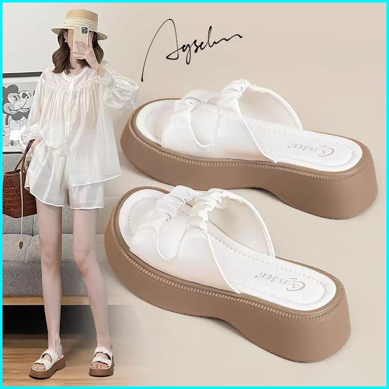 Sandal Wedgse Wanita Ruched Strap Model Casual Korea Premium