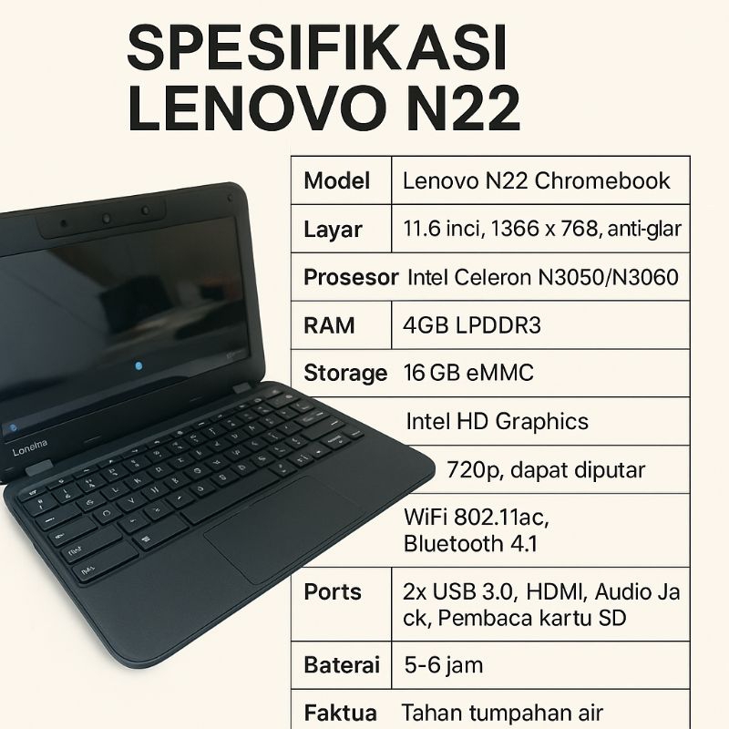 Laptop Chromebook Lenovo N22/N23 Ram 4Gb OS Chrome