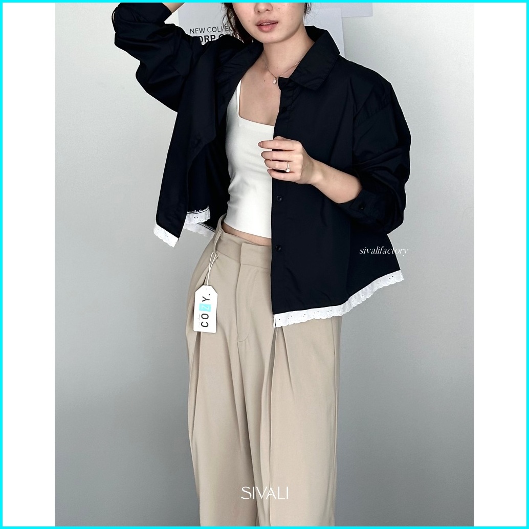 Sivali Mille Oversized Crop Shirt - Atasan Kemeja Wanita Oversize Lengan Panjang - Kemeja Kantor Formal Casual 1922