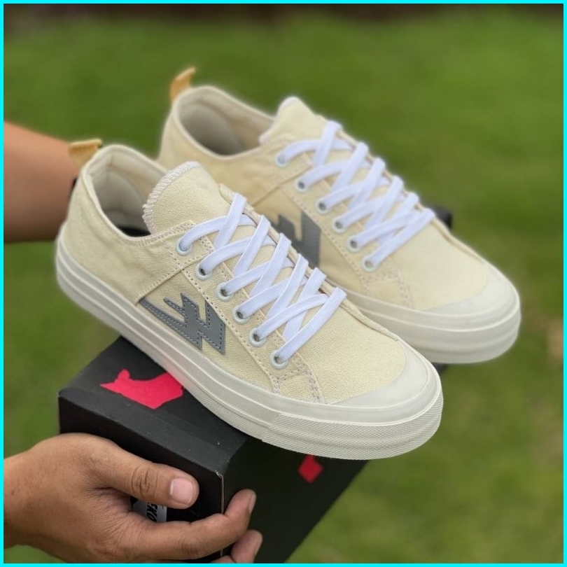 Sepatu Sneakers Pria Wanita Aekoshoes Two Years Cream Lis Grey Original Produk Lokal Indonesia