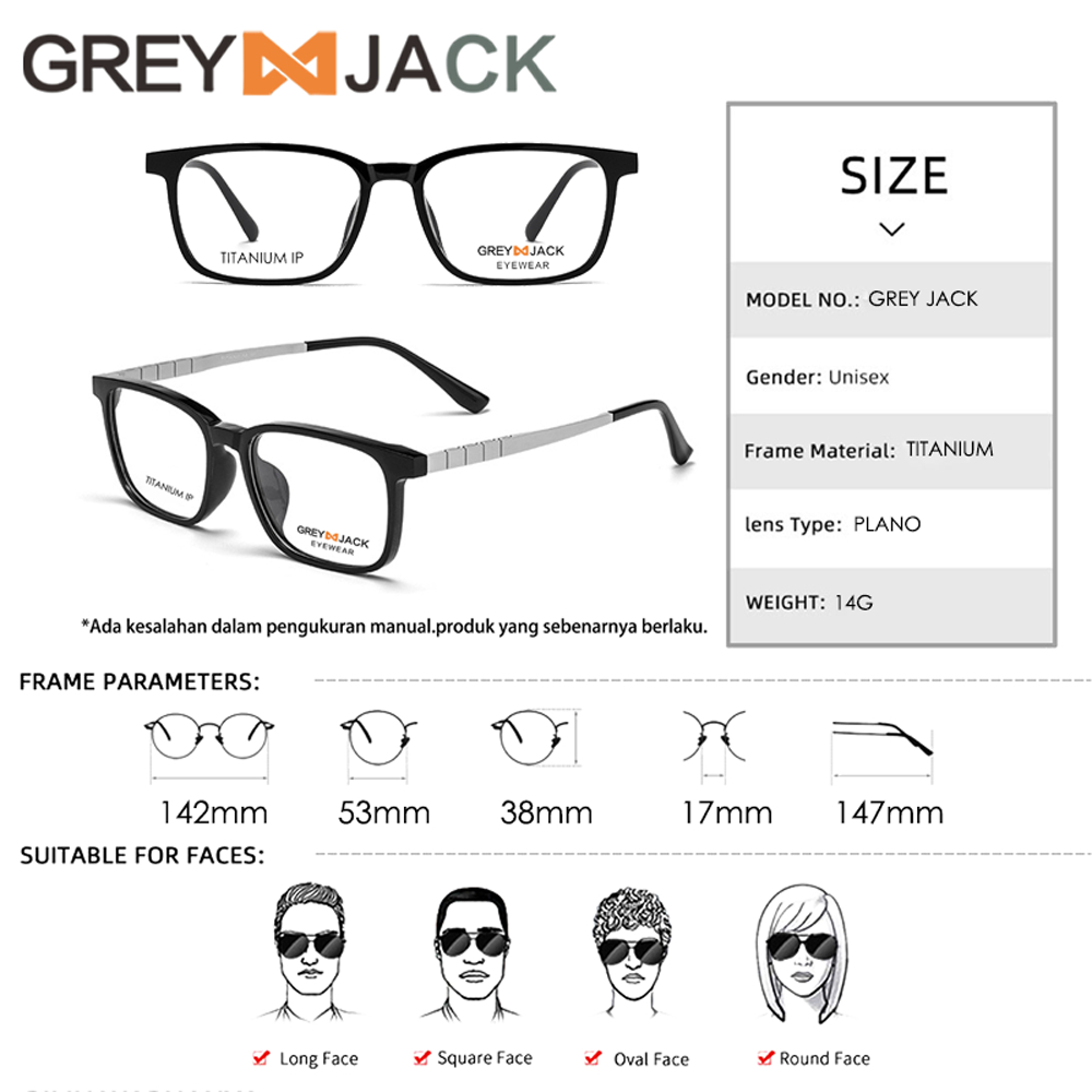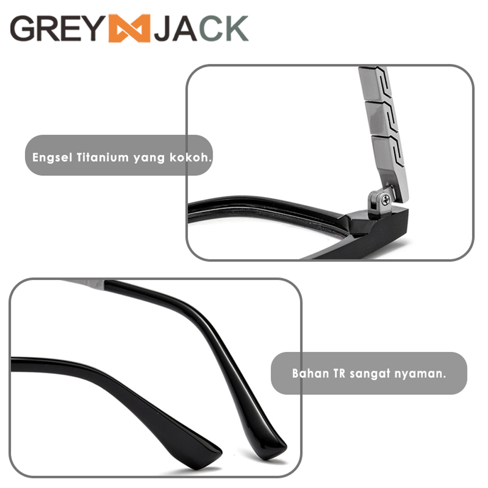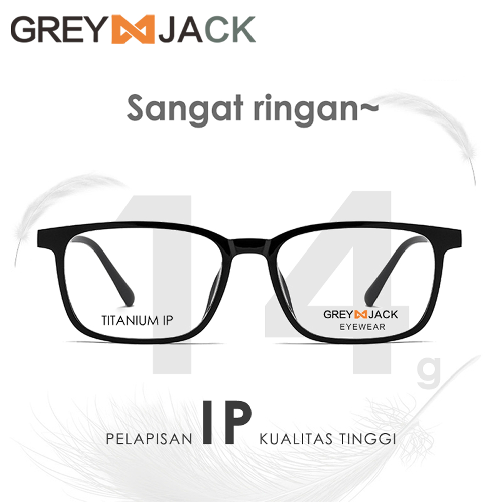 Grey Jack Frame Kacamata Bahan Titanium Model Kotak Fashion Bisnis Casual Ringan Kokoh Bisa Minus Antiradiasi Blueray Photocromic T 15209