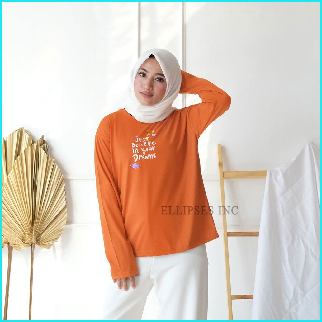 Ellipsesinc Kaos Oversize Wanita Lengan Panjang Just Believe