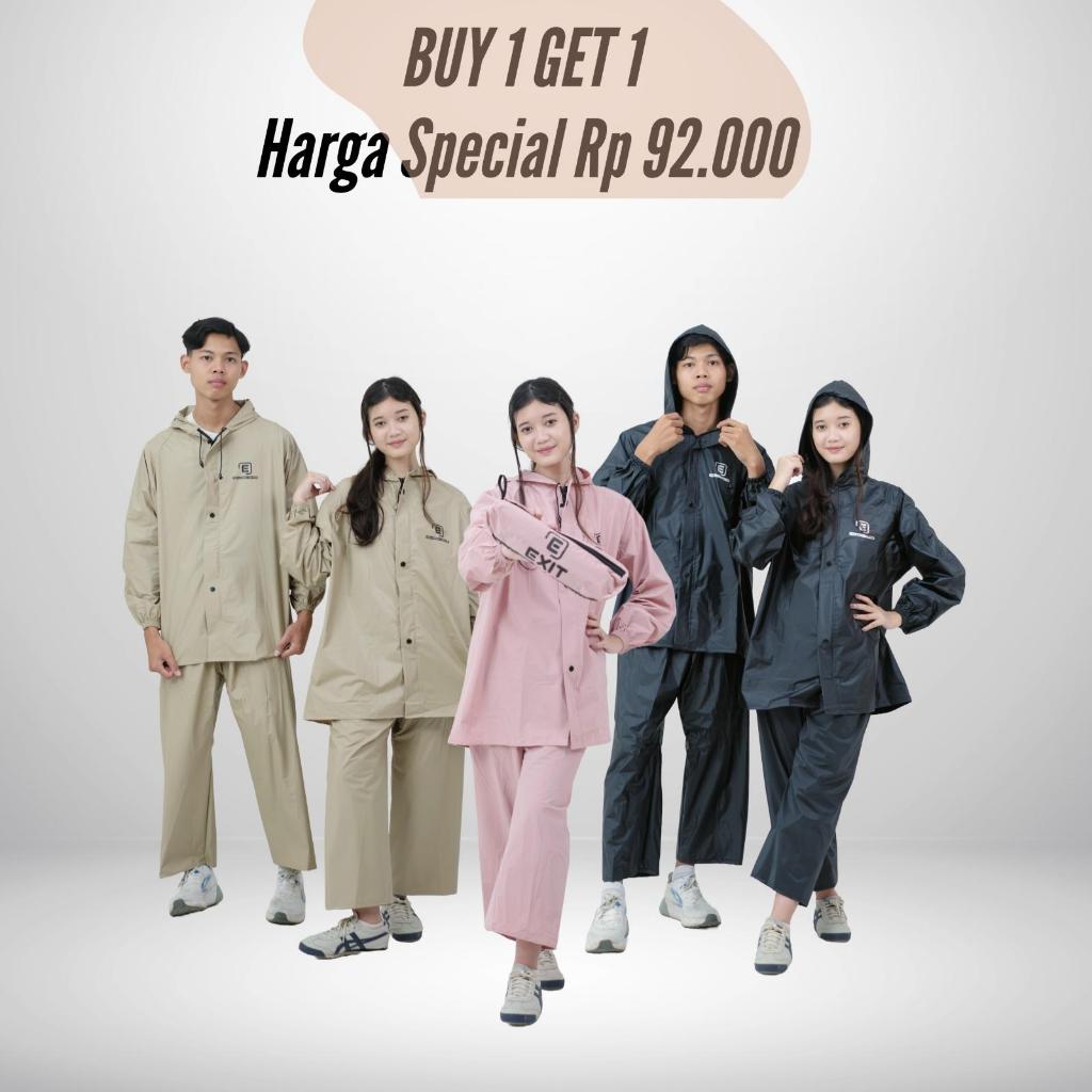 Jas Hujan Exit Setelan Pria Wanita Dewasa Bahan Tebal Elastis Tahan Lama