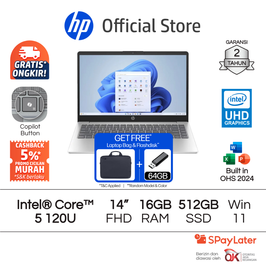 Laptop HP Intel Core i5 8GB / 16GB RAM 256GB / 512GB SSD Silver Windows 11 Home 14 Inch Gen 12 Garansi 2 Tahun Promo Murah Gratis Ongkir Official Non Second