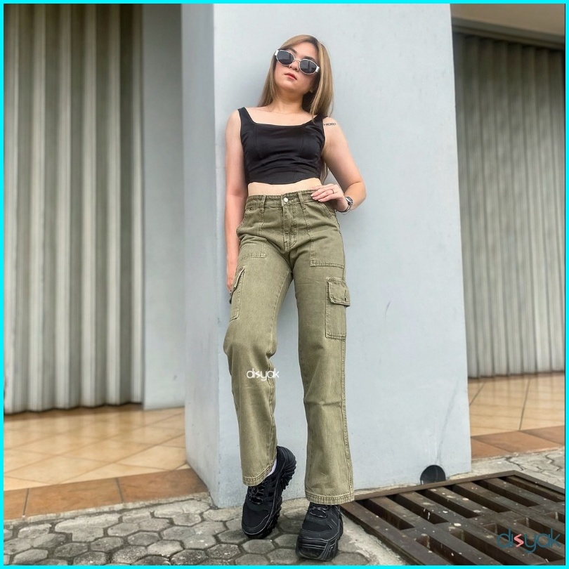 Disyak - Boyfriend Cargo Jeans Army Brown 714-814