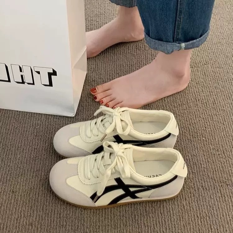 Sepatu Casual Wanita Sneake Kets Kasual Kulit Datar Putih Anti Selip ST096