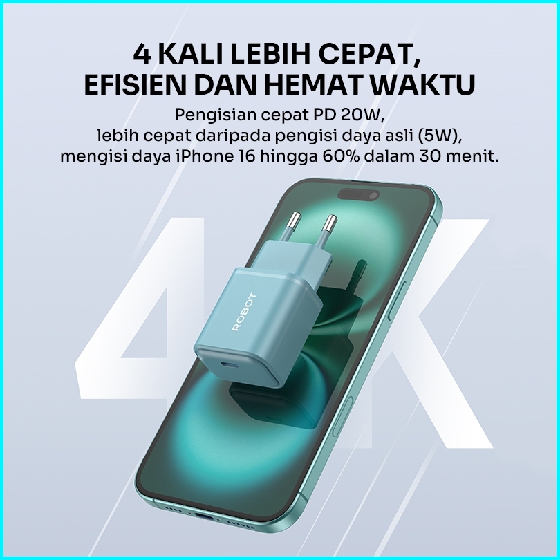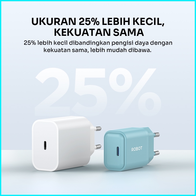 Robot Adaptor Charger Gan 20w Fast Charging 3a Pd With Type C Cable Temperature Control Kepala Charger For Android Iphon