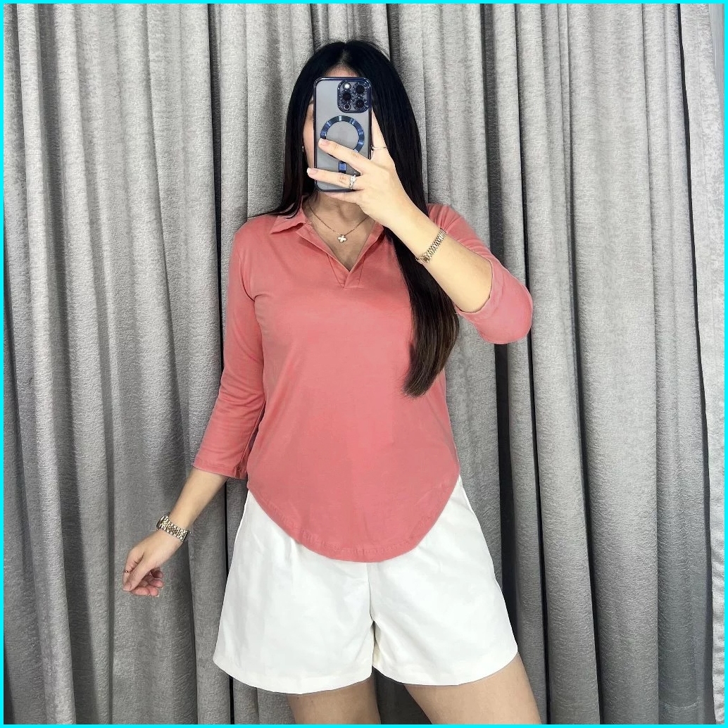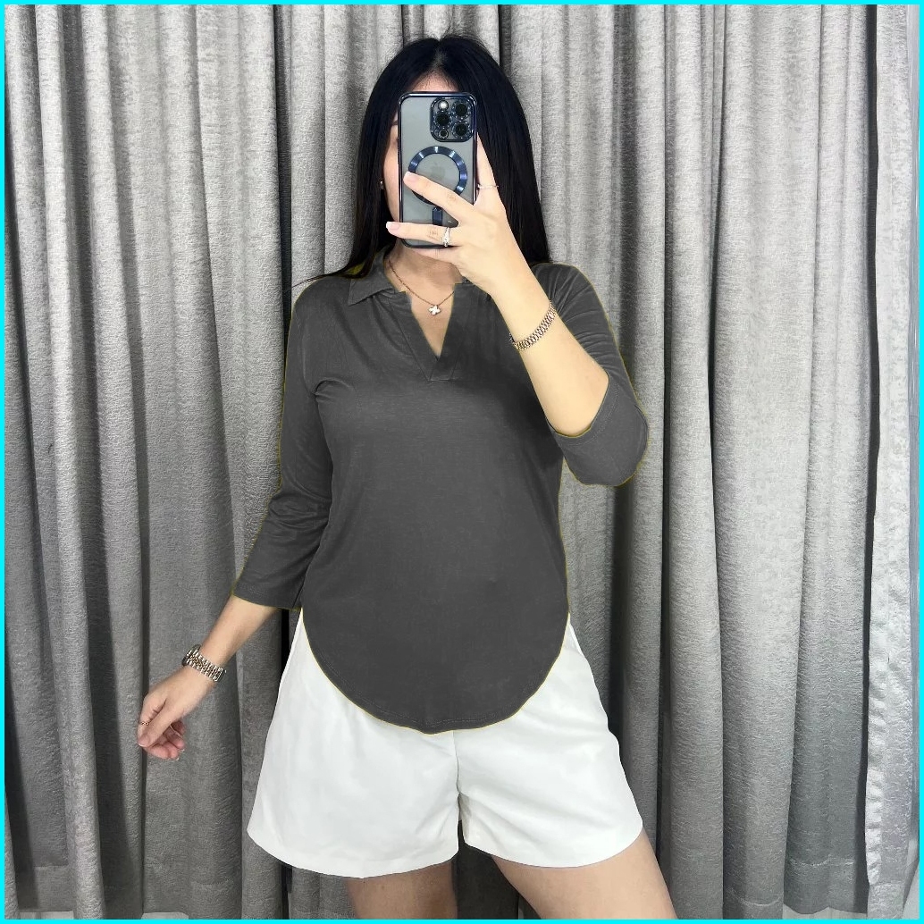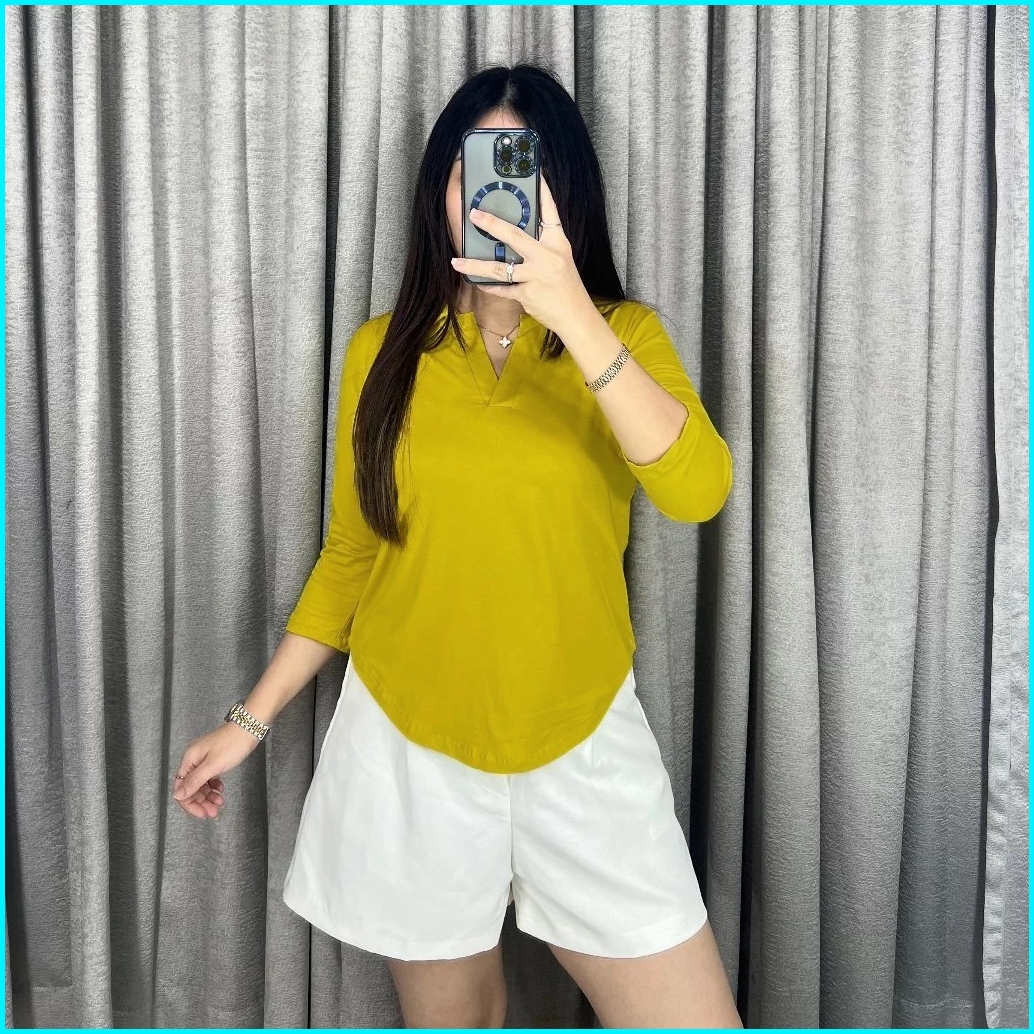 Atasan Kerah V Neck Lengan 7 8 Oversize Kaos Wanita Lengan Panjang 8006