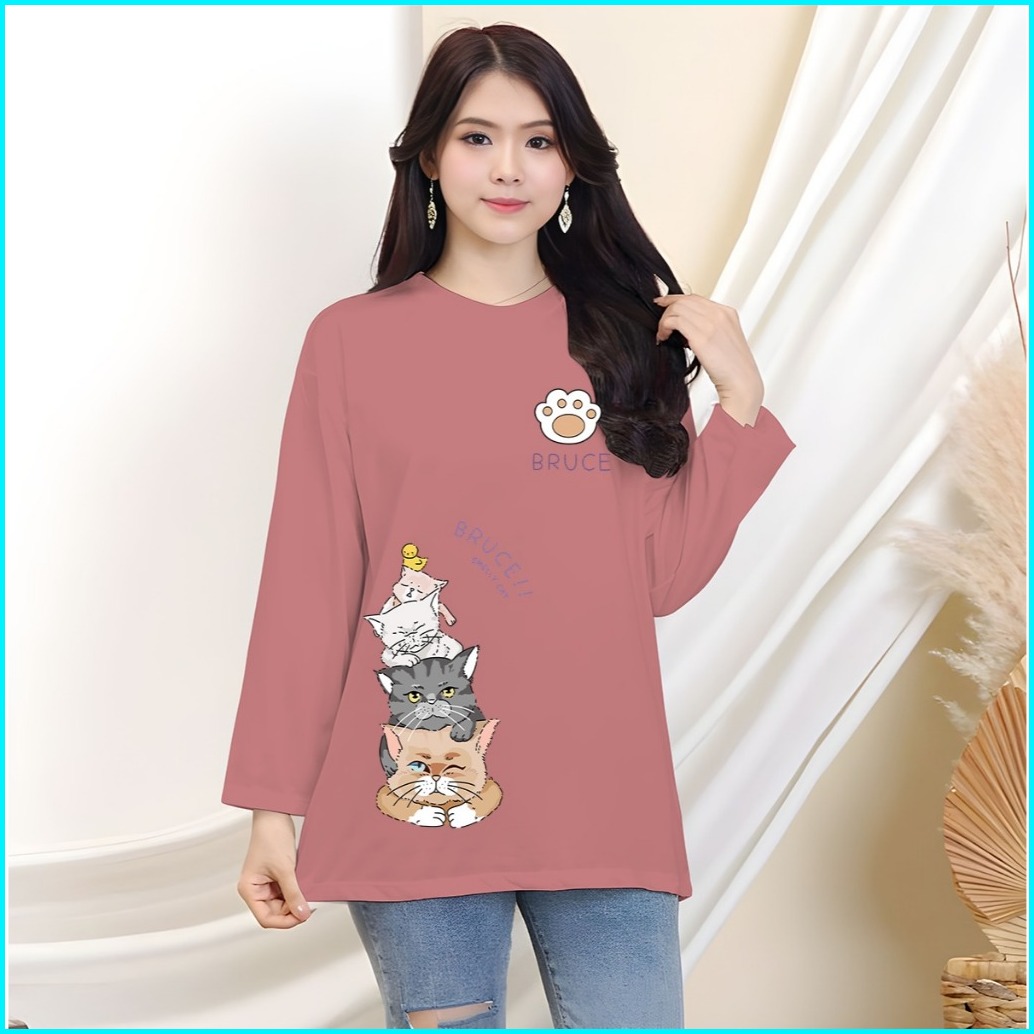 Kaos Oblong Oversize Wanita Lengan Panjang Bruce Cat
