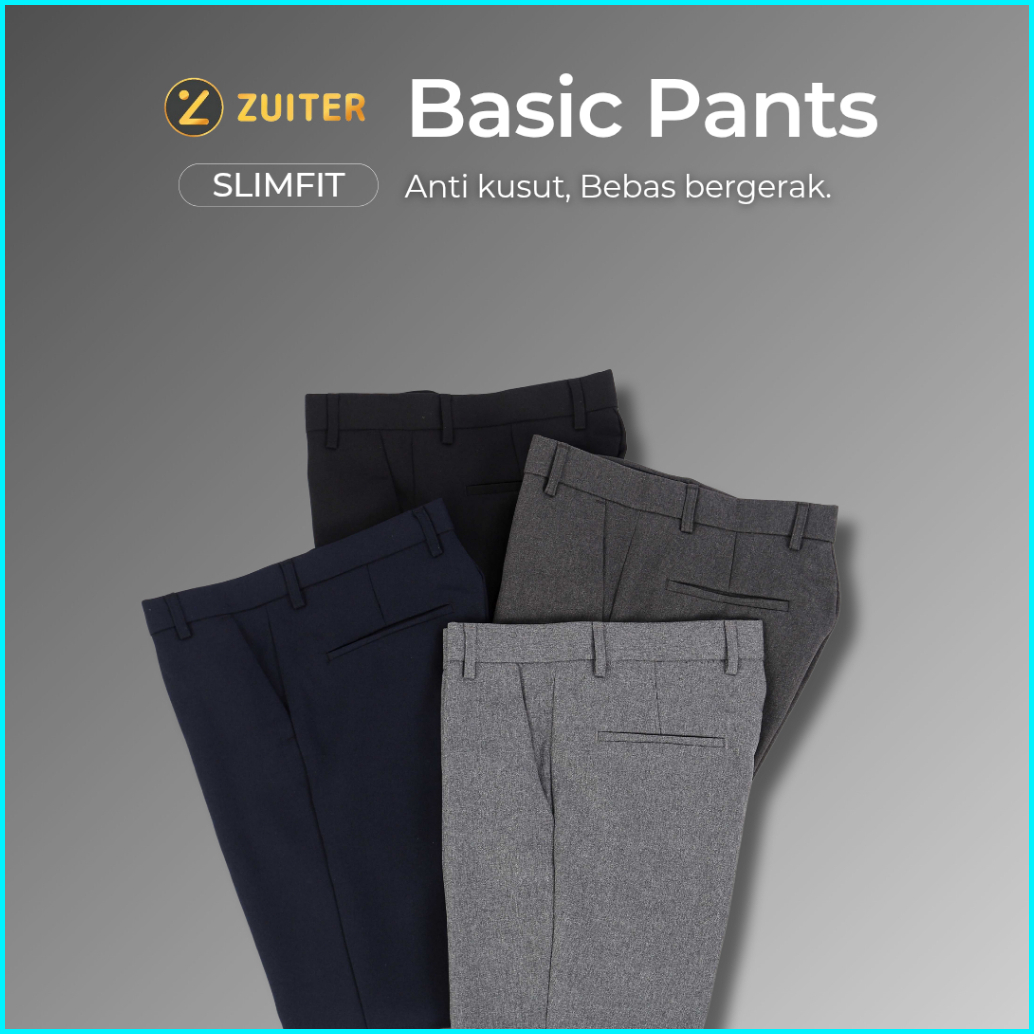 Zuiter - Basic Pants Celana Bahan Slimfit Formal Kerja Kantor Dasar Pria