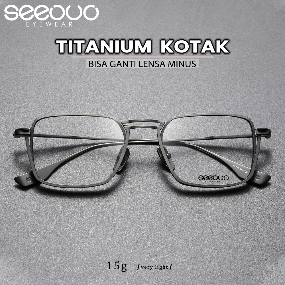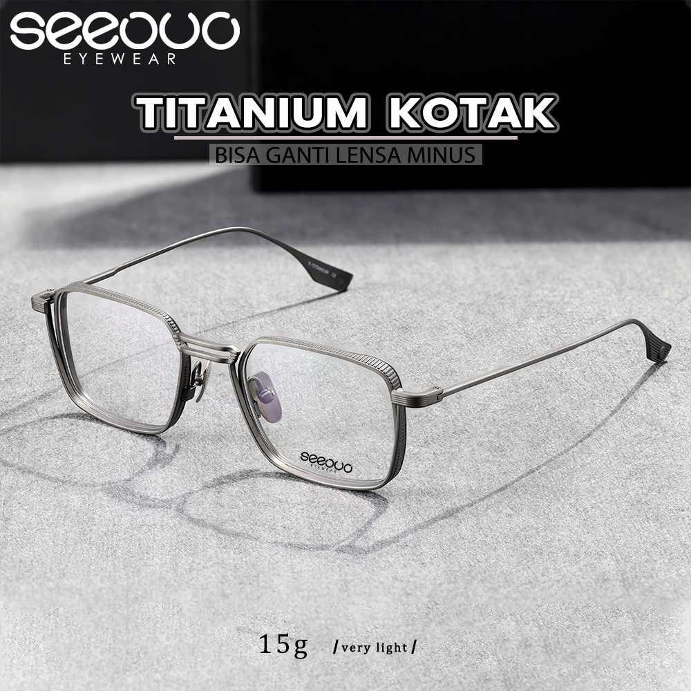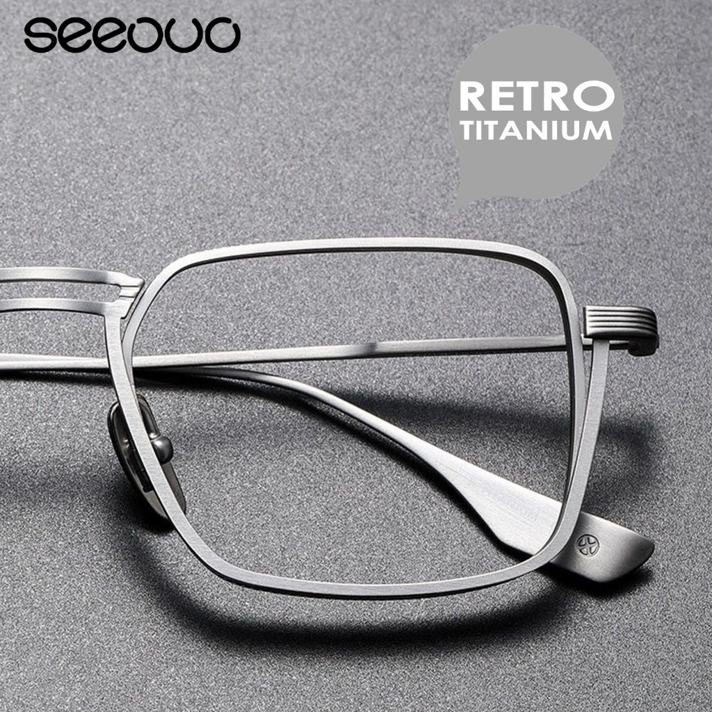 Seeouo Kacamata Plano Lens Retro Classic Fashion Pria Wanita Kekinian Bisa Minus Bahan Titanium DLX 125