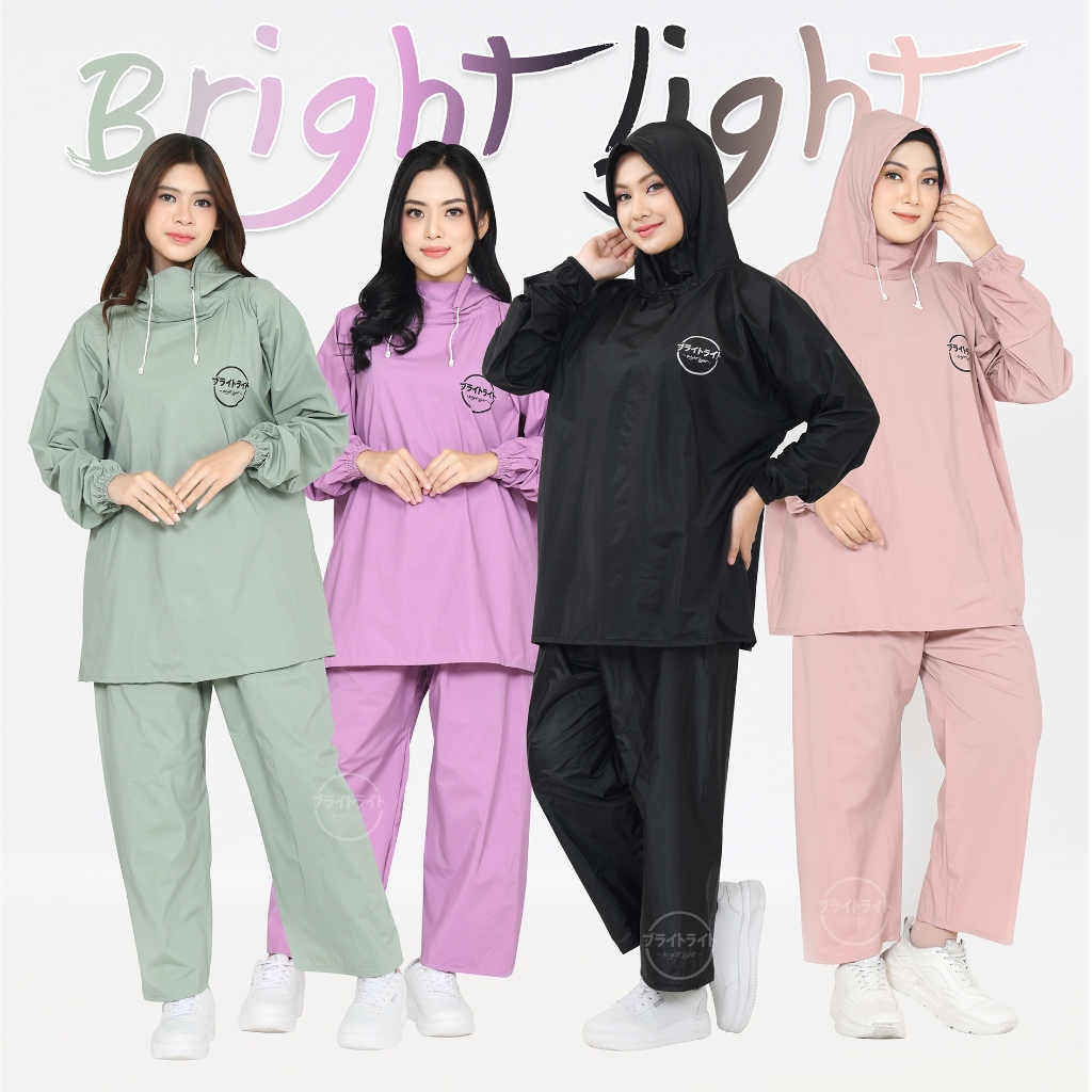 Mantel Hujan Gamis Syar'I Bright Light Original - Setelan Baju Celana - Bahan Pvc 0.25 Karet Elastis Kuat Tebal Untuk Pr
