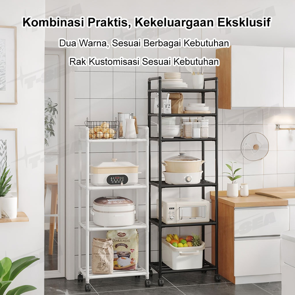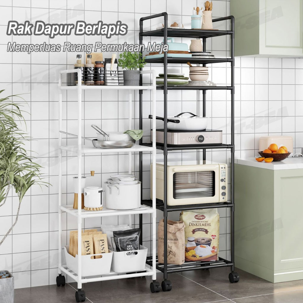 T-SEA Rak Dapur Besi 6 Tingkat Dengan Roda Rak Penyimpanan Microwave Panci rak panci susun multifungsi