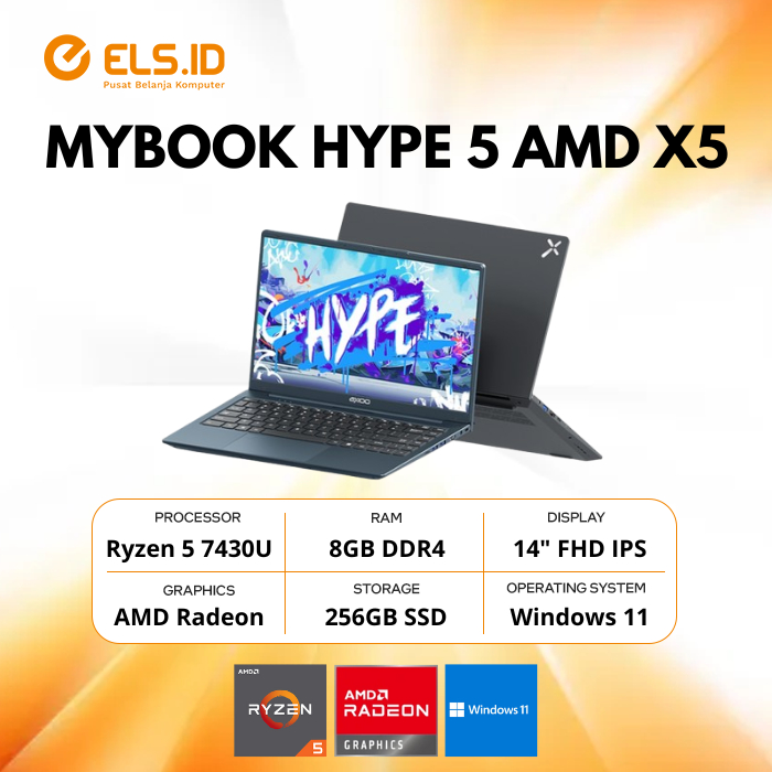 Axioo MyBook Hype 5 X5 AMD Ryzen 5 7430U 8GB SSD 256GB 14" FHD IPS W11