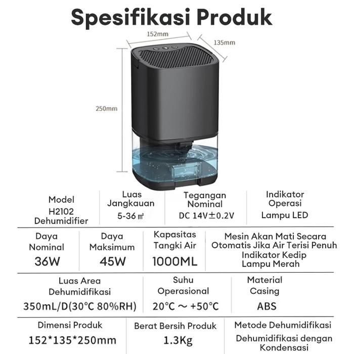 dehumidifier 2in1 Mengurangi Kelembapan Sekitar 1L/1000ML Dehumidifier Kamar Dehumidifier Rumah Tangga Kantor Ukuran Kec