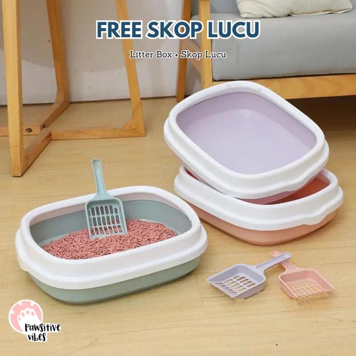 Litter Box Kucing Bulat - Bak Pasir Kucing Tempat Toilet Kucing - Kucing Free Sekop Serokan Pasir - Small > 3kg Pink