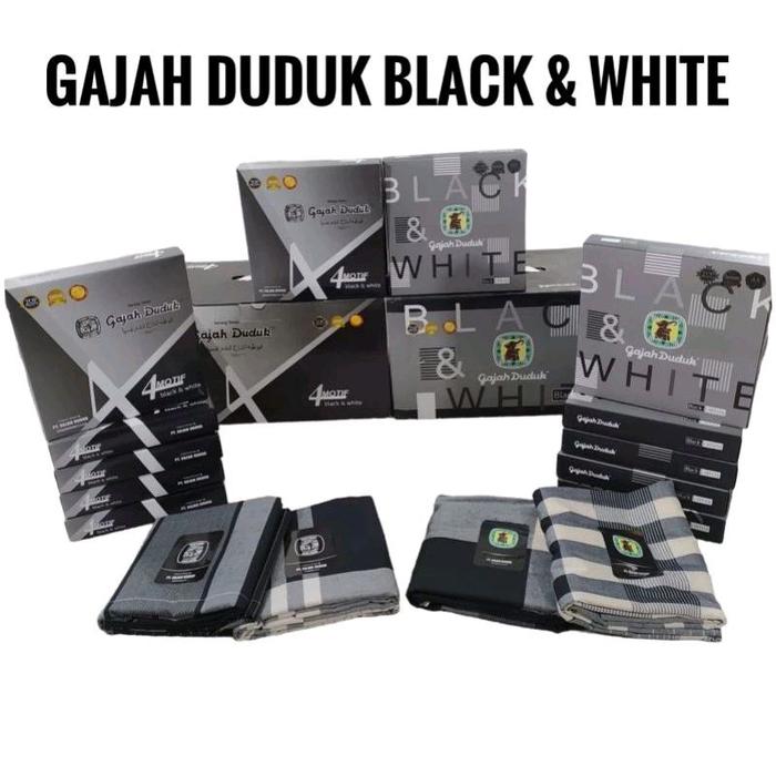Sarung Gajah Duduk Black White Katun Santri Muslim Pria Dewasa - Dominan Hitam