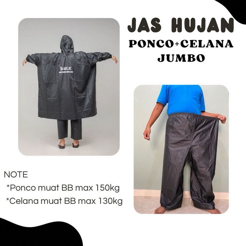 Jas Hujan Ponco Setelan Celana Jumbo Bahan Pvc 0,25
