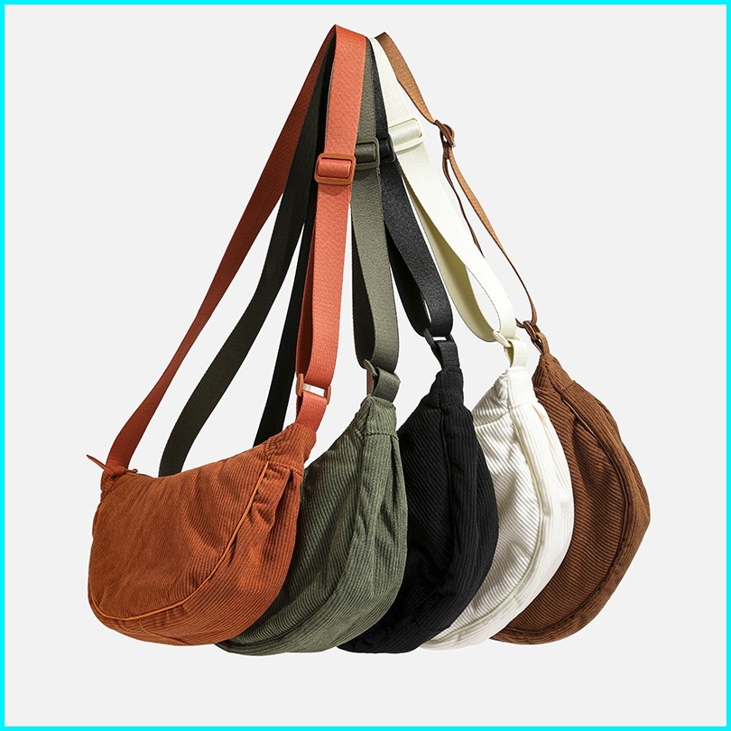 Livix Half Moon Bag Waist Bag Corduroy Sling Bag Tas Slempang Wanita Pria Waist Bag Sling Bag Tas Slempang Kordur