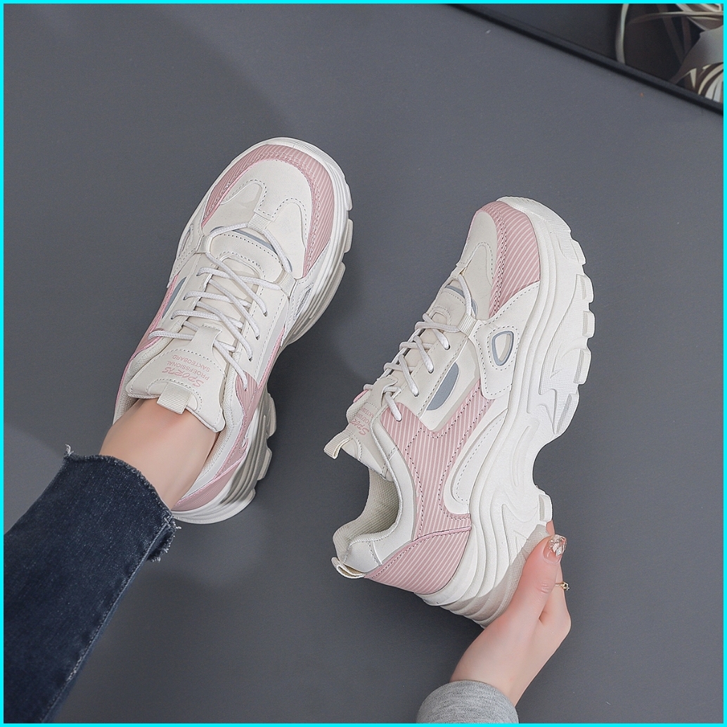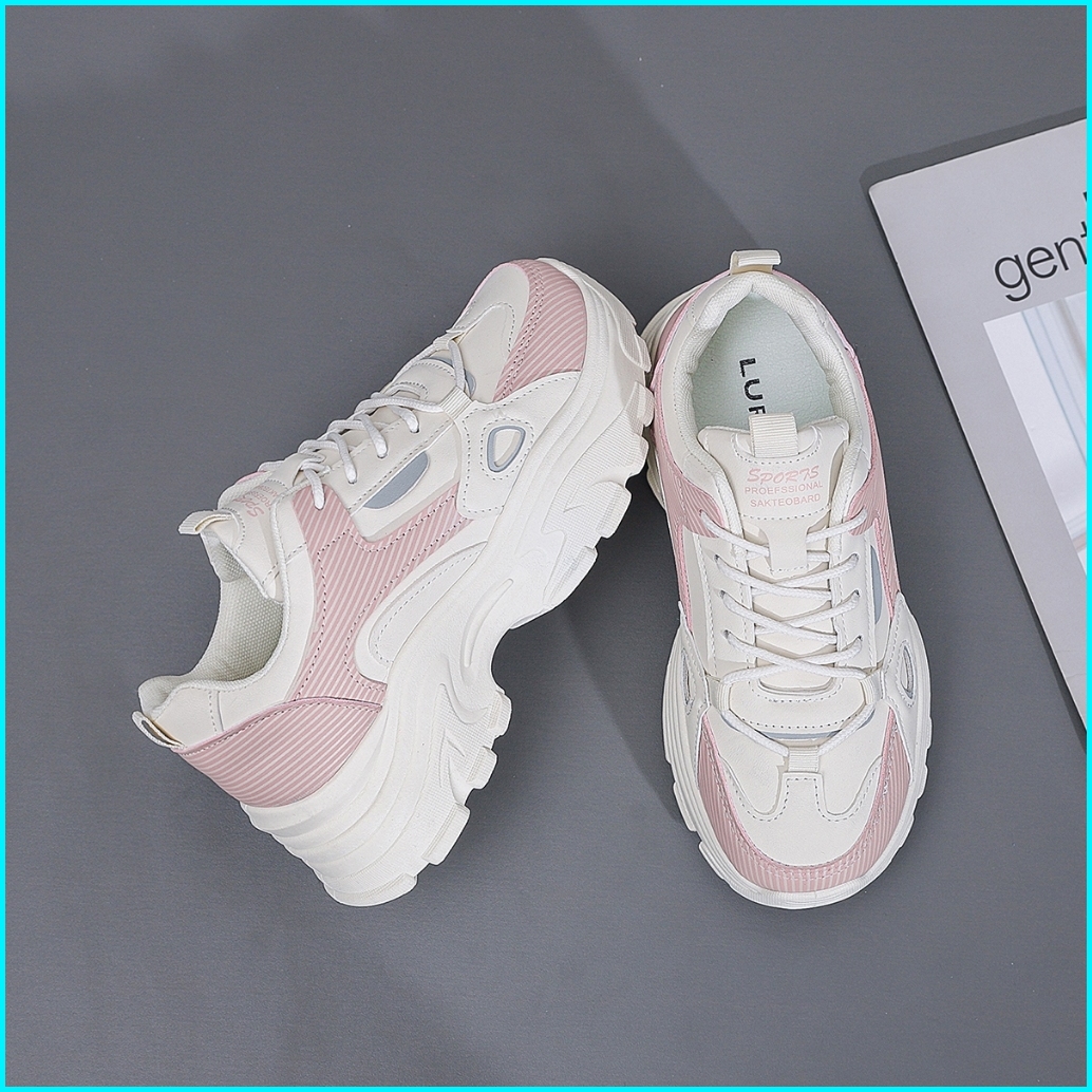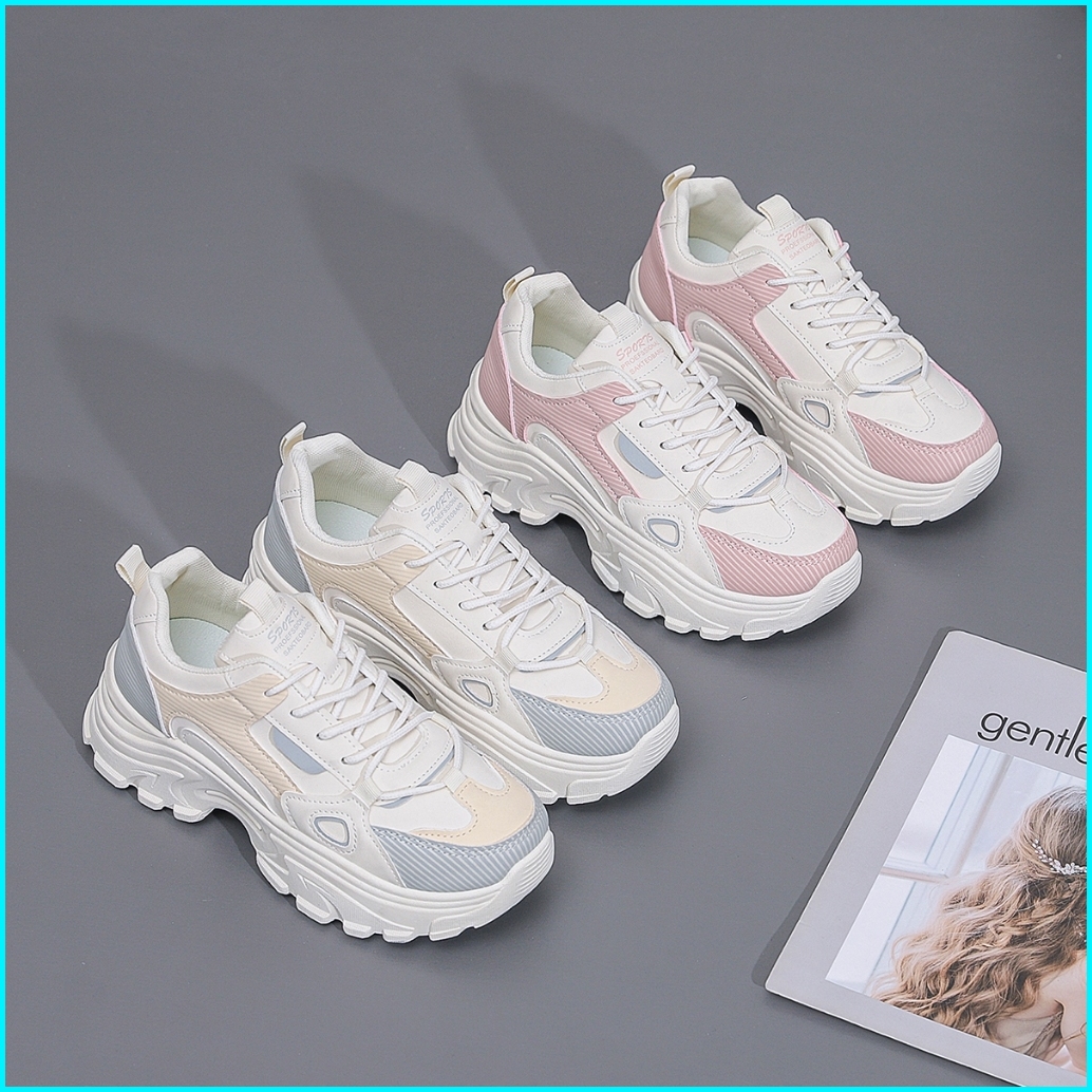 Lurad Sepatu Sneakers Wanita Sm23 Warna Soft Polos Pink Sneakers Cewek Sol Empuk Hangout Ootd