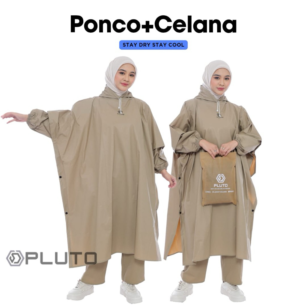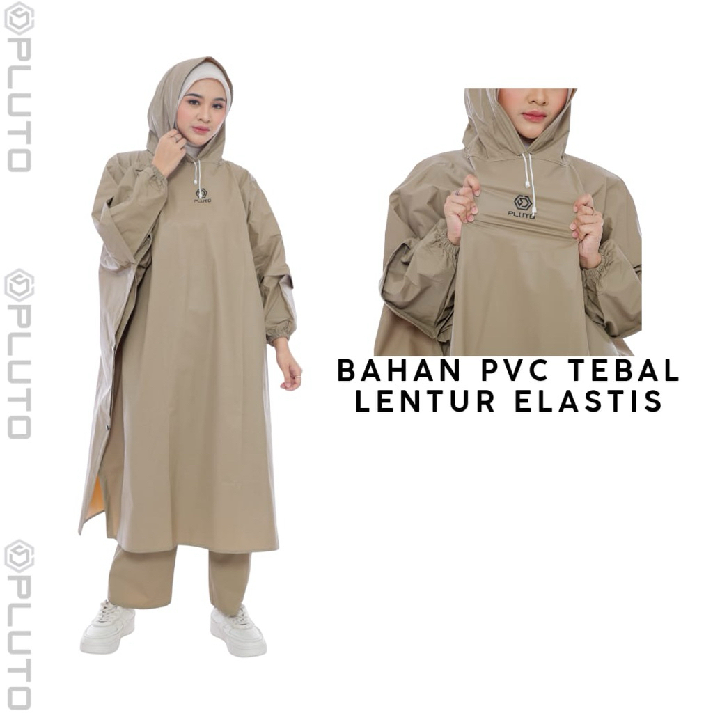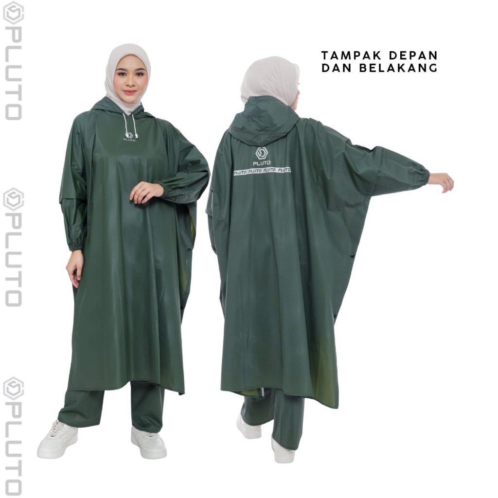 Jas Hujan Raincoat Anti Rembes Ponco Jumbo Setelan Pria Wanita Dewasa Pvc Karet Original Pluto
