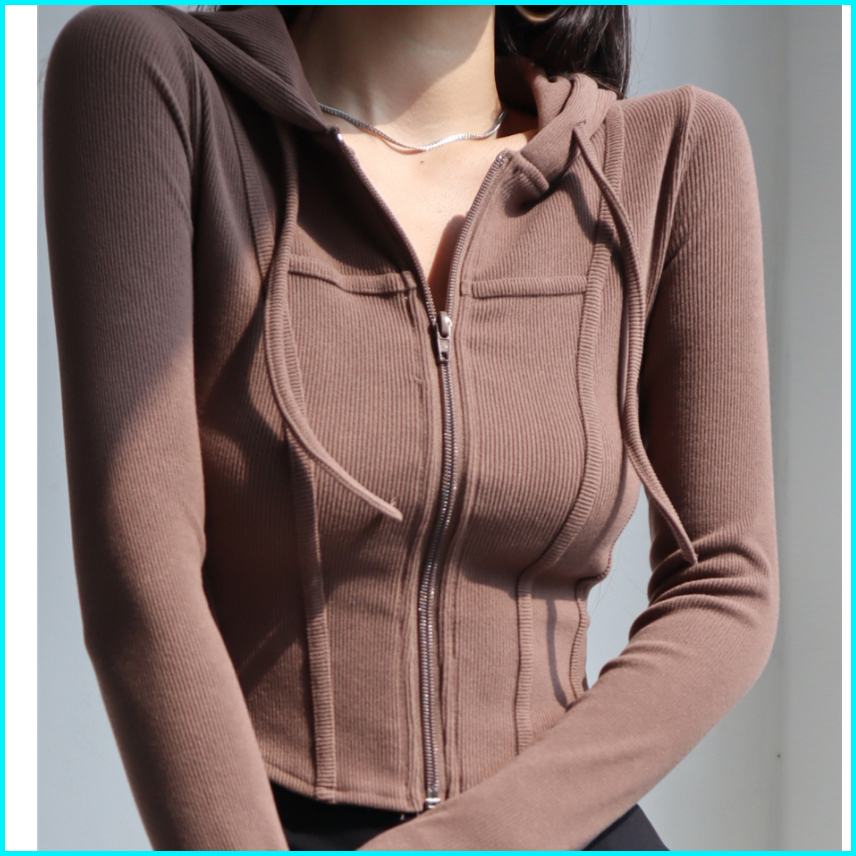 Premium Cropped Drawstring Full Zip Hoodie Sweatshirt 7444 S M L