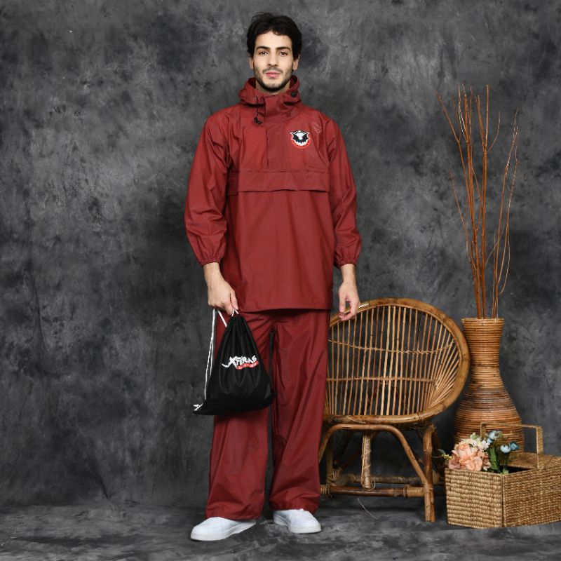 Exterjas- 883 Jas Hujan Kangaro Setelan Dewasa, Bahan Pvc Raincoat Pria Wanita Mantel/ Baju Hujan