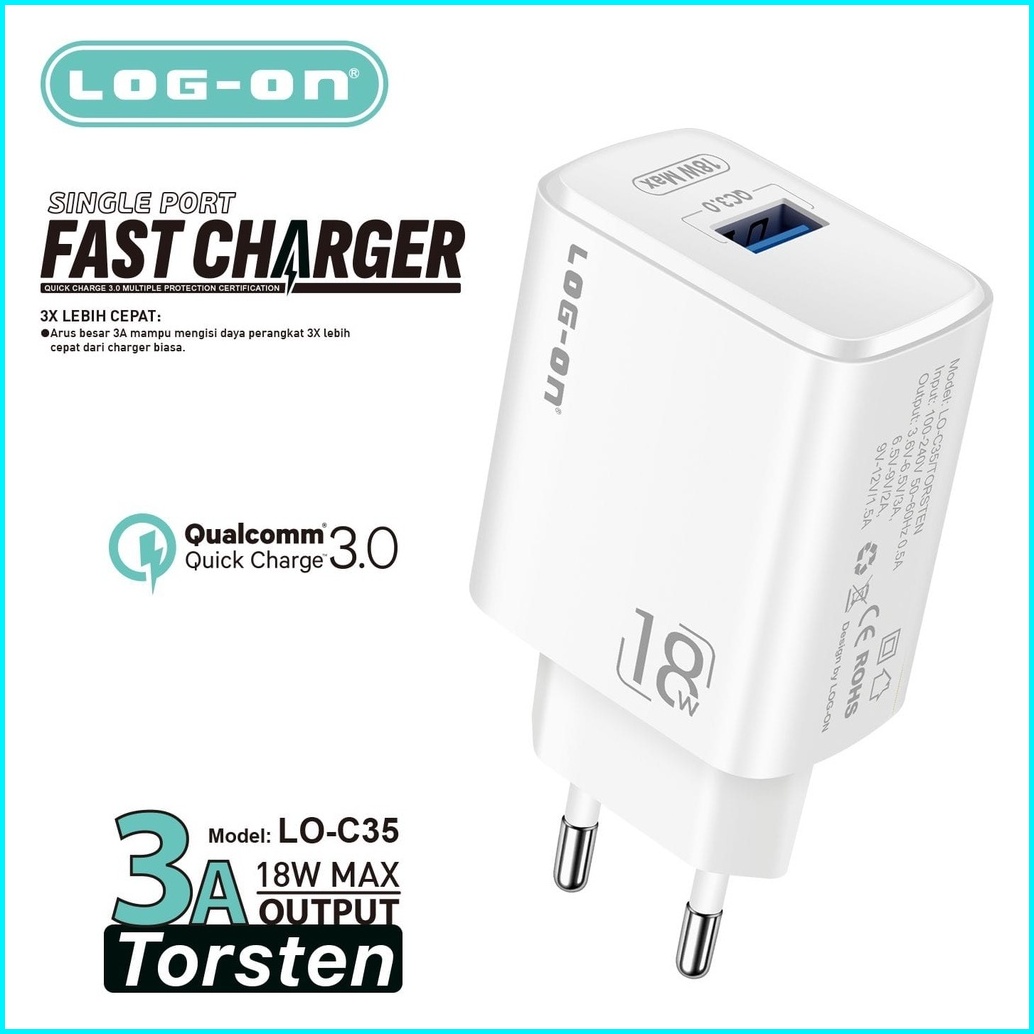 Batok Log On Lo-c35 Charger 5 Volt 3a Fast Charging 18w Quick Charger 3.0 Original 1 Tahun Garansi