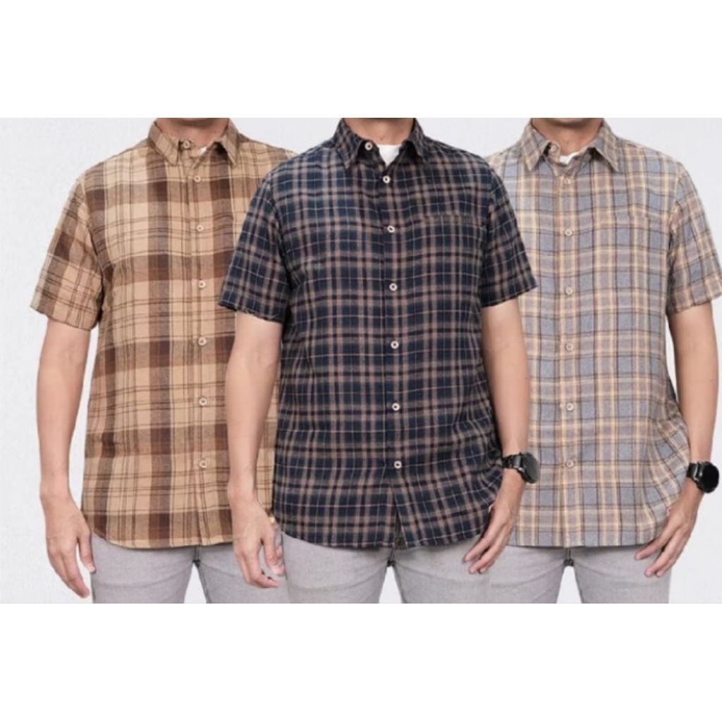Kemeja Lengan Pendek Kotak Catur Pria Dewasa Kain Flanel Super Ukuran Standar Sampai Oversize