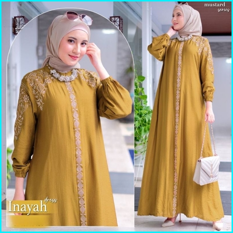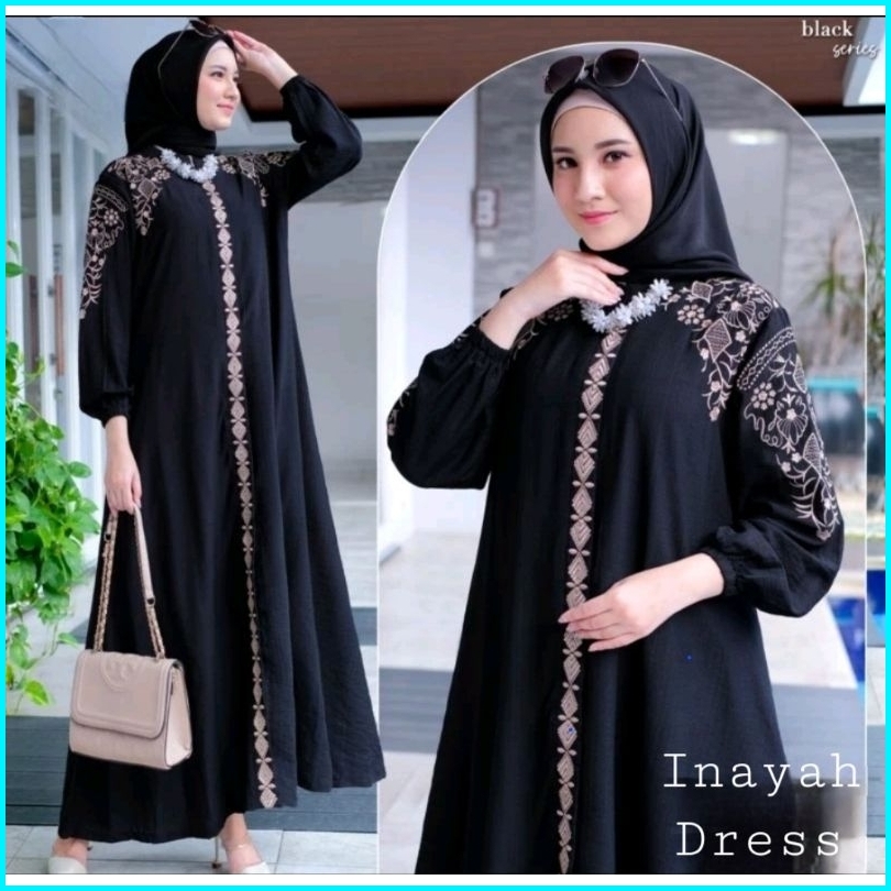 Inayah Dress Gamis Kondangan Mewah Adem Dan Elegant Gamis Polo Linen Mix Bordir Cantik Gamis Muslim Gamis Pengajian