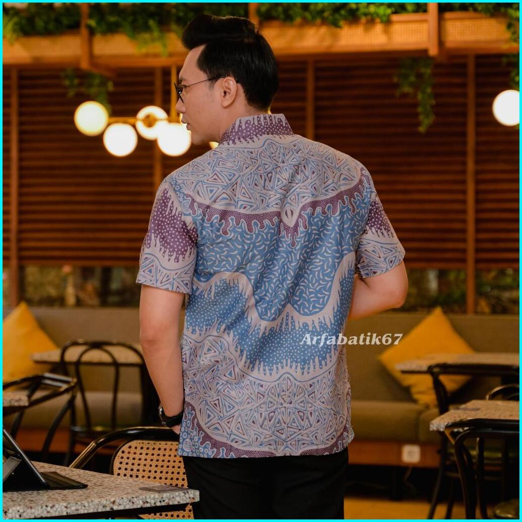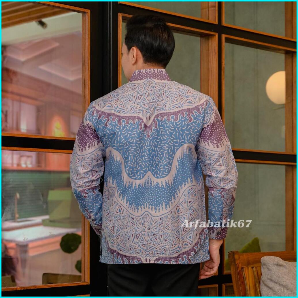 Kemeja Batik Pria Lengan Panjang Katun Solo Premium Lapis Furing Hero By Arfabatik67 Baby Blue