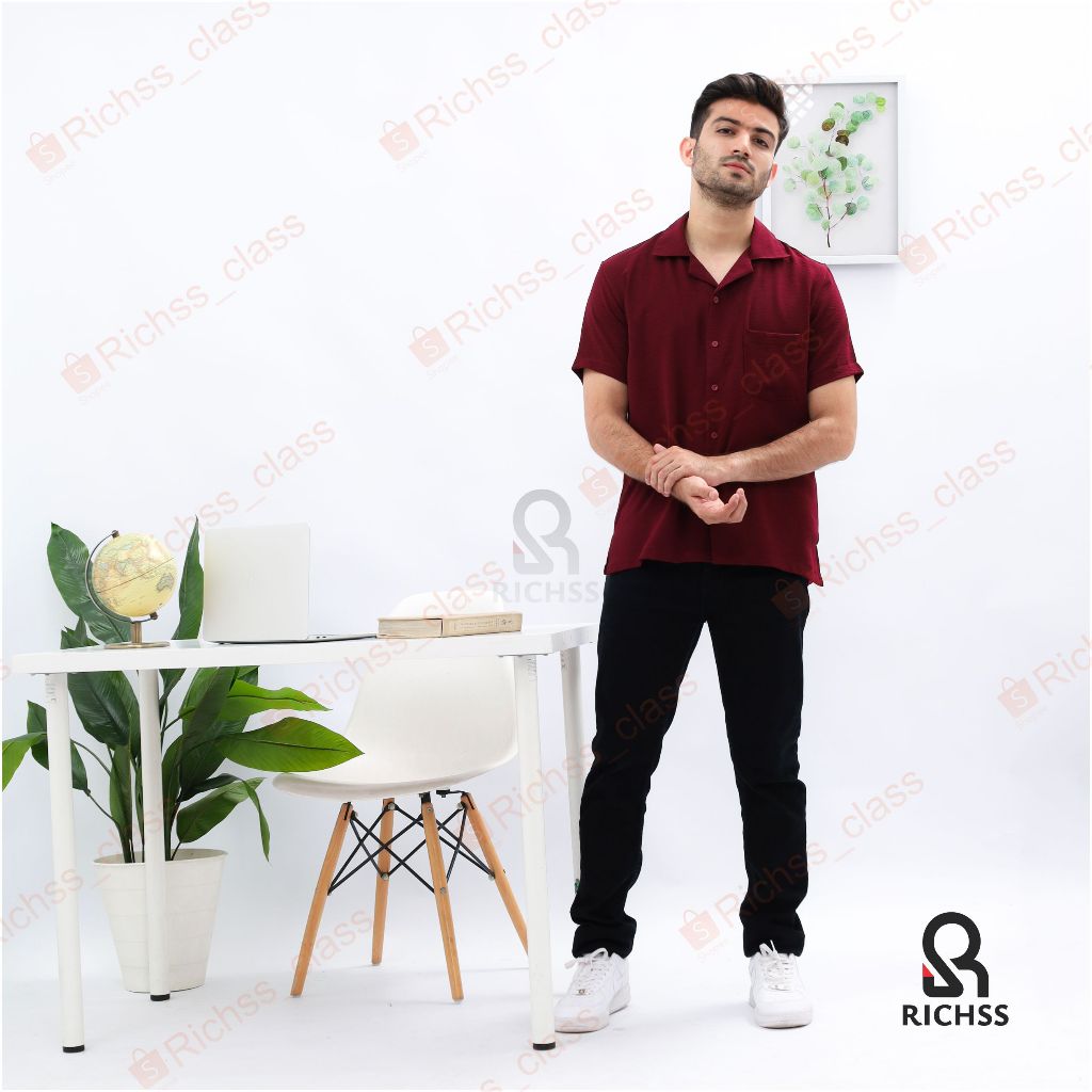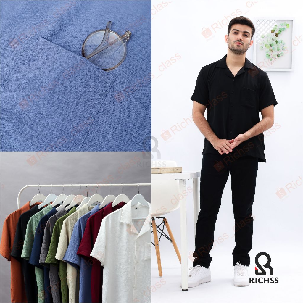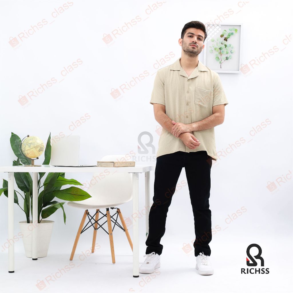 Kemaja Pria Santai Pantai Casual Formal Cowok Gaul Kekinian Tangan Pendek Clubing Hang Out Premium