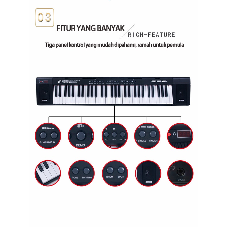 Benston Music- Piano Elektronik Multifungsi, Piano 61-Key, Piano Elektronik Profesional Rumah Pintar