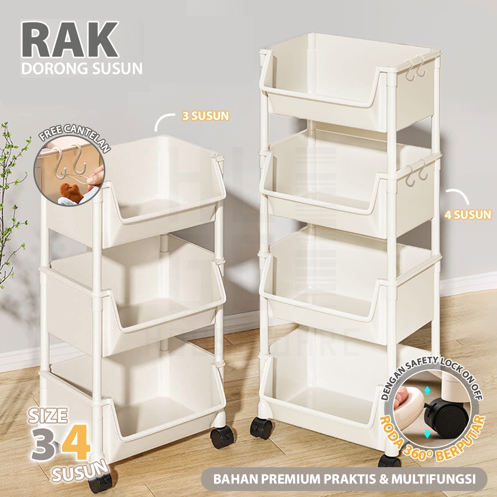 Hoptech - Rak Susun Serbaguna 3-5 Tingkat dengan Roda rtable untuk Buku Mainan & Penyimpanan